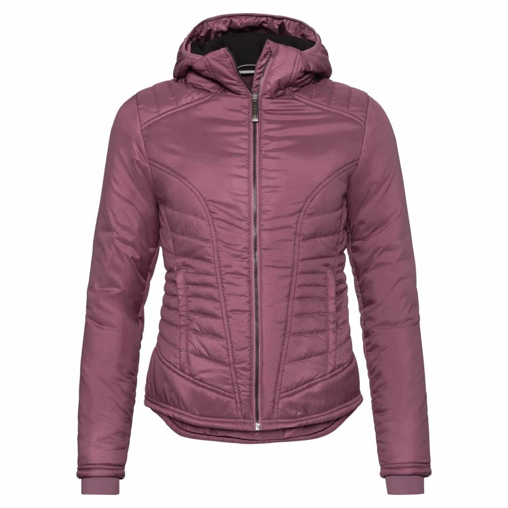 - Padded hood with integrated stand-up collar and brushed warp knit lining