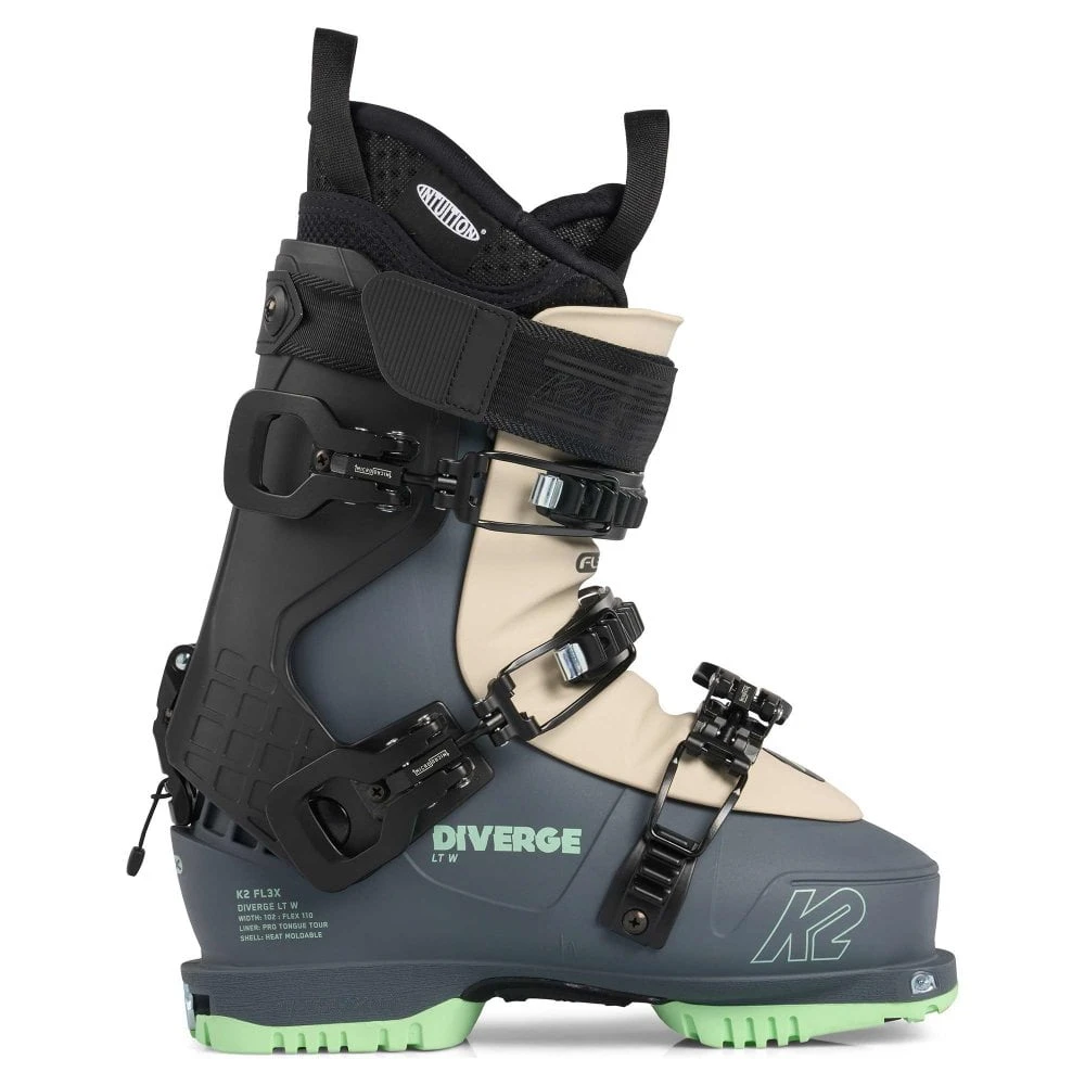 Looking to skip the lift line and set your own skin track? The FL3X Diverge LT W prioritises lightweight mobility without sacrificing downhill performance. The Diverge LT W is Tech compatible and equipped with an Intuition Pro Tour Tongue, a lightweight Grilamid Shell and Michelin GripWalk outsoles for maximum grip in any terrain. Go your own way, this is the Diverge LT W.