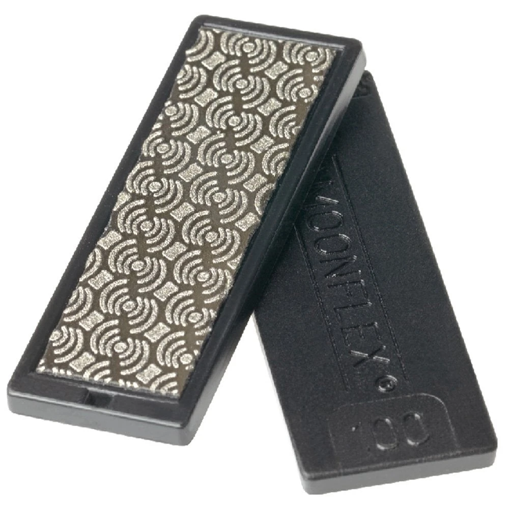 The Moonflex Minifile 100 is a 100 Grit 70mm diamond file designed for the first step in edge tuning – heavy edge removal. Use with the Moonflex Minituner 87 or 88° for easy sharpening.