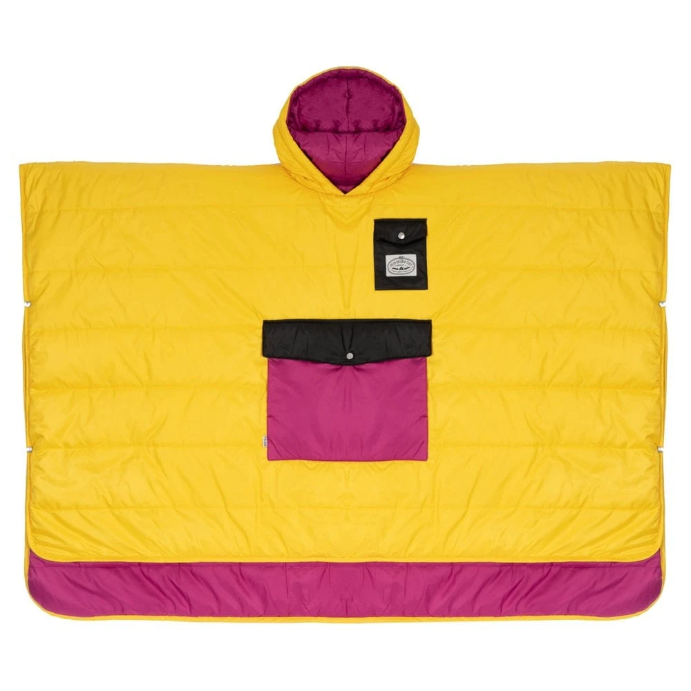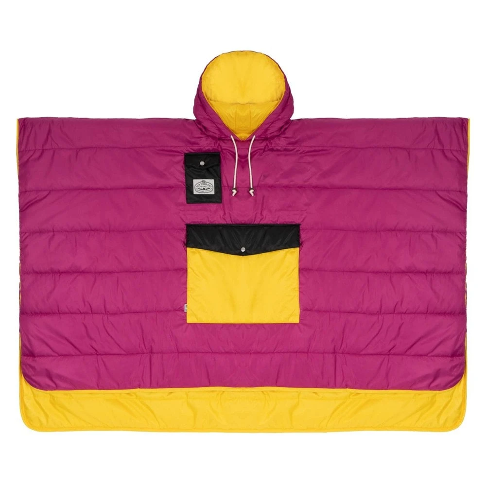 Stay cozy on the move, on the ground, and on the couch. It’s a poncho and a blanket all in one package. Simply snap or unsnap the sides to change the mode of enjoyment. It has a kangaroo pocket perfect for keeping your hands warm and two additional snap closure pockets for securing your precious cargo. Great for use at home, around the fire, at games, at festivals, and of course at camp!