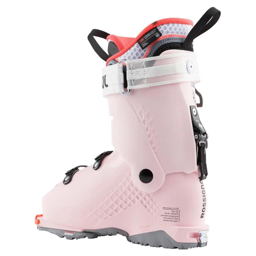Chase untracked lines inbounds or out in the women’s Alltrack Elite 110 LT. This no-compromise free-touring boot features Dynafit® certified inserts for compatibility with all alpine touring bindings and a pre-mounted GripWalk® sole for compatibility with GripWalk® specific alpine bindings. It has a releasable cuff for a natural range of motion on the skin track or boot pack and a 98mm last for a precise fit. The Generative Design Grid shell is engineered for reduced weight and full power transmission on-piste or off and everywhere in-between. The pre-shaped, full custom liner includes Thinsulate™ insulation and a touring-specific design for enhanced mobility.