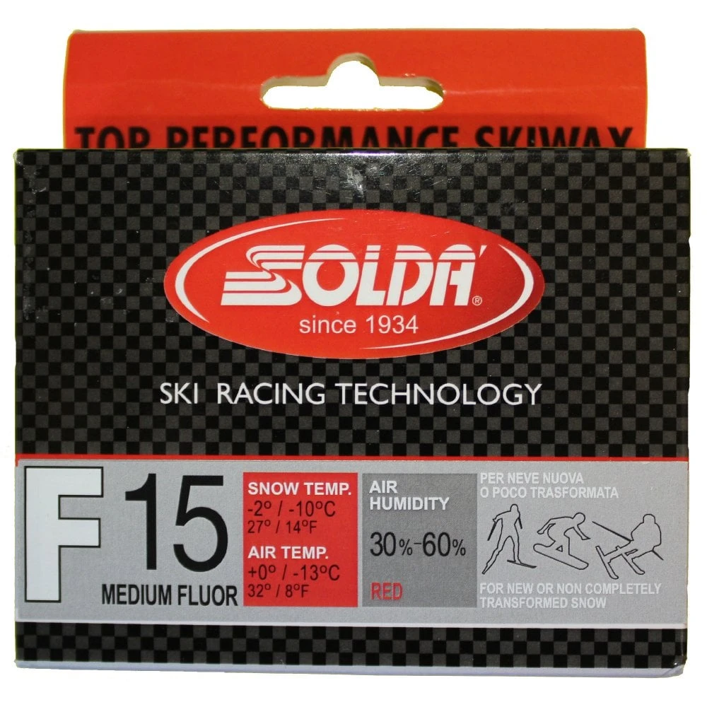 The Solda F15 Medium Fluor ski wax contains a lower proportion of fluorine making it ideal as a performance training wax. With the same temperature ranges as the Solda F31 range, you’re able to find a F15 option to suit all conditions. For the days you really want to fly, use F15 as a base wax for pure fluoro race additives.