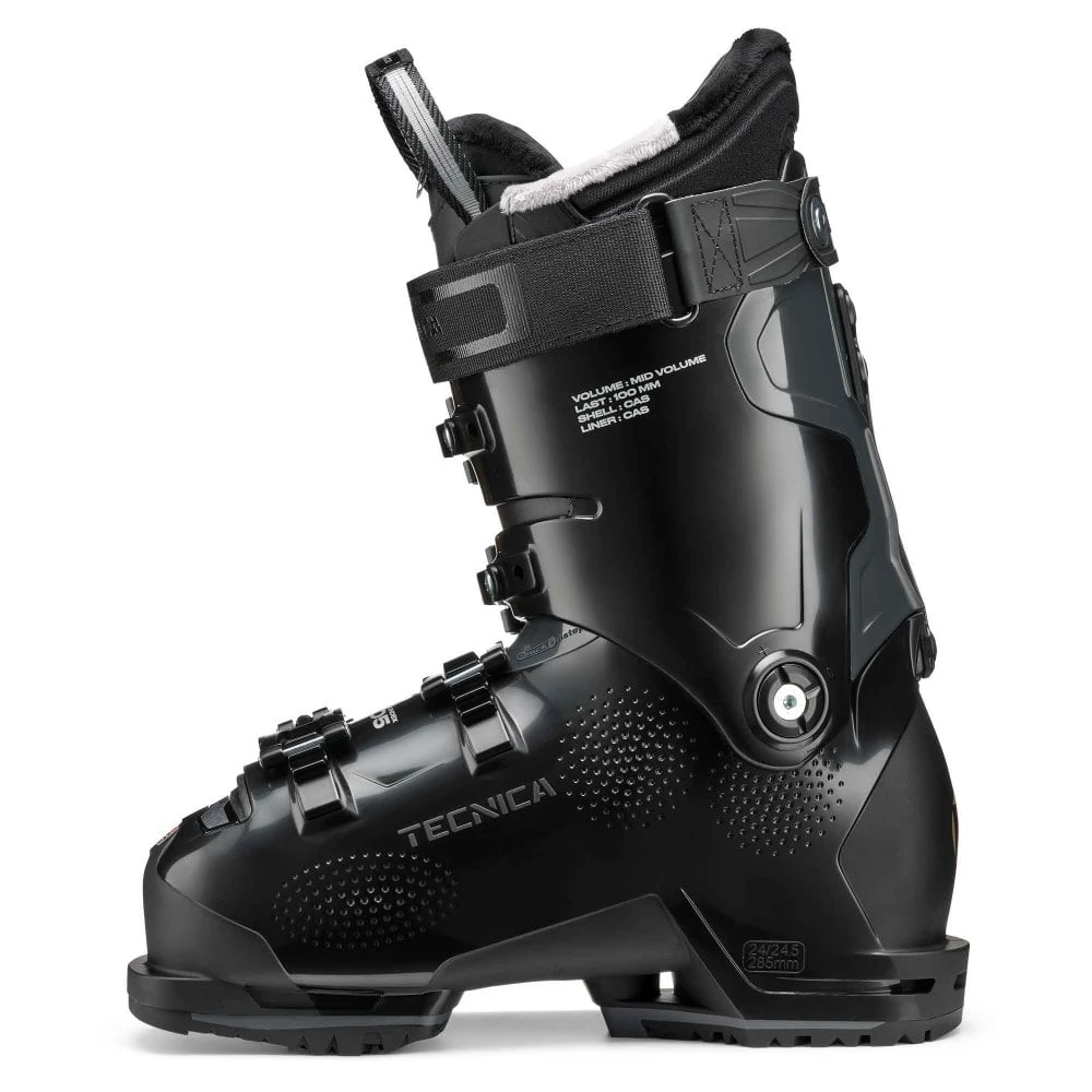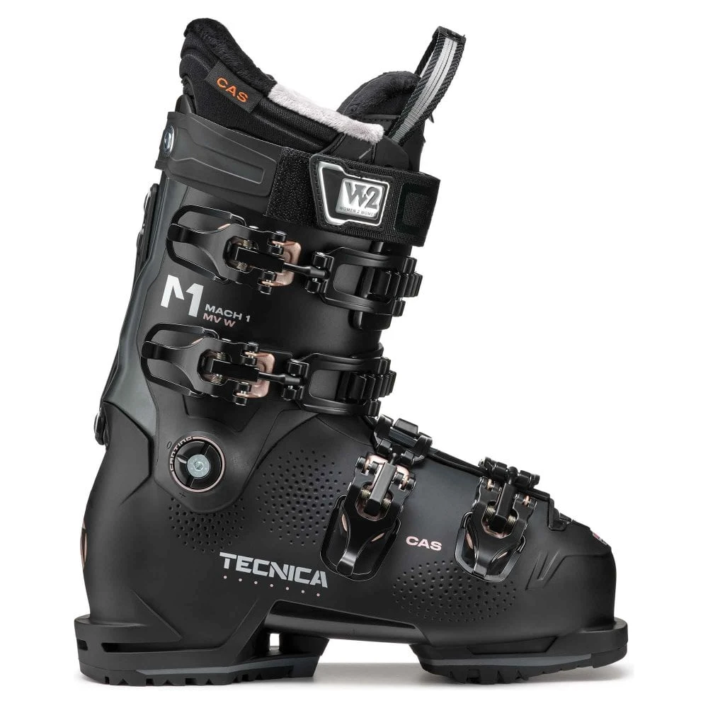 Designed with input from our Women 2 Women program, the Mach 1 MV 105 W with T-Drive Technology is a high-performance ski boot specifically designed for strong female skiers with medium volume feet. Fit is priority number one in the MV 105 W and women’s specific Custom Adaptive Shape C.A.S. technology in the liner and cuff is the way we achieve it. Developed with an anatomically shaped and women’s specific shell and liner, the C.A.S. technology provides a great fit right out of the box but also allows a high level of customisation if need be. The C.A.S. Cuff Adapt System quickly and easily adjusts volume of the top of the cuff to fit a variety of lower leg shapes. The Asymmetric shell and cuff design in combination with the Women’s Natural Stance setup puts you in the perfect balanced position to tap into all the energy and performance of your skis. And with flex rating of 105 this boot gives you the power and support you need to charge all over the mountain with control and confidence. Get out there and shred ladies.